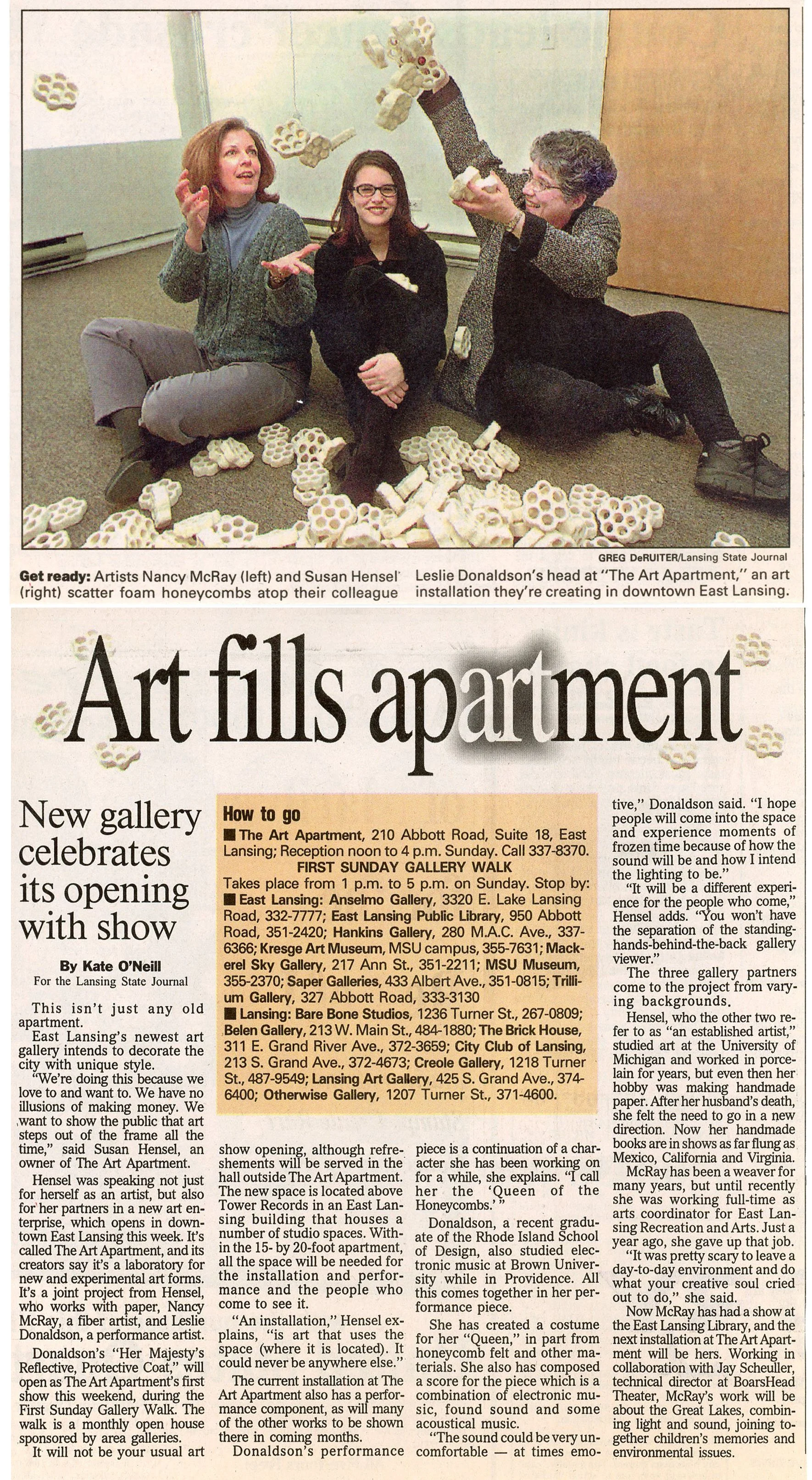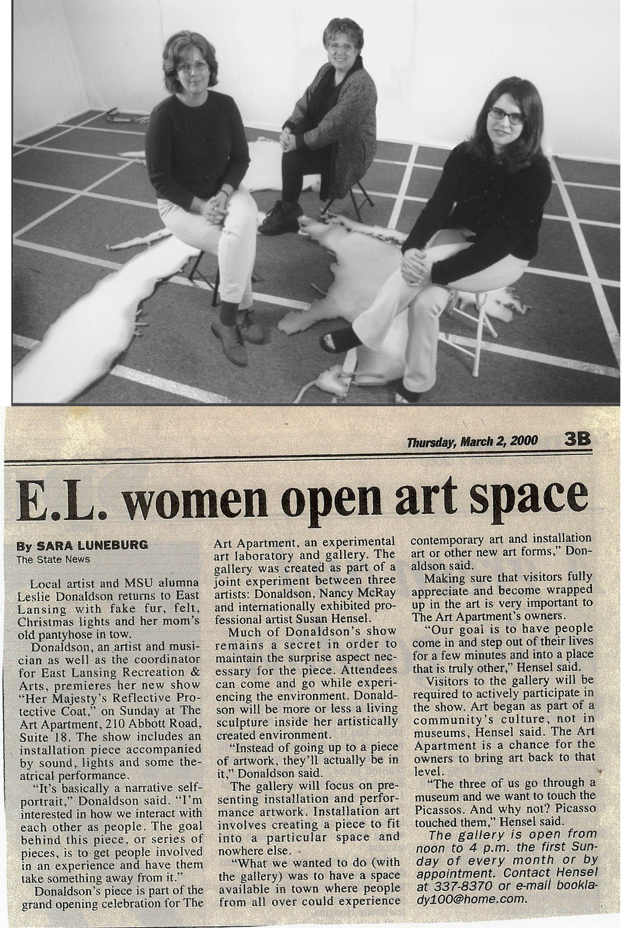 The Art Apartment was an “artistic laboratory” located on the second floor of a former commercial office space in downtown East Lansing, Michigan. Created by three artistic partners, it was the first alternative space of its kind in the region to present art installations, immersive art environments, and multi-disciplinary performances.